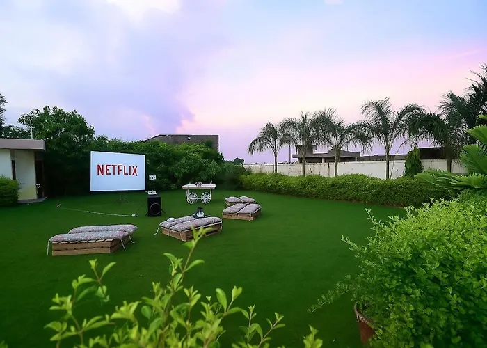 Die Villa 3 Bhk Farm W Pool & Jacuzzi In Jaipur liegt knapp 7 Kilometer vom Albert Hall Museum entfernt und verfügt über ein Hallenbad sowie einen Whirlpool und ein Hallenbad, die für einen entspannten Aufenthalt sorgen. Die Villa befindet sich ca. 15 Autominuten vom Hawa Mahal entfernt und verfügt über eine Terrasse.